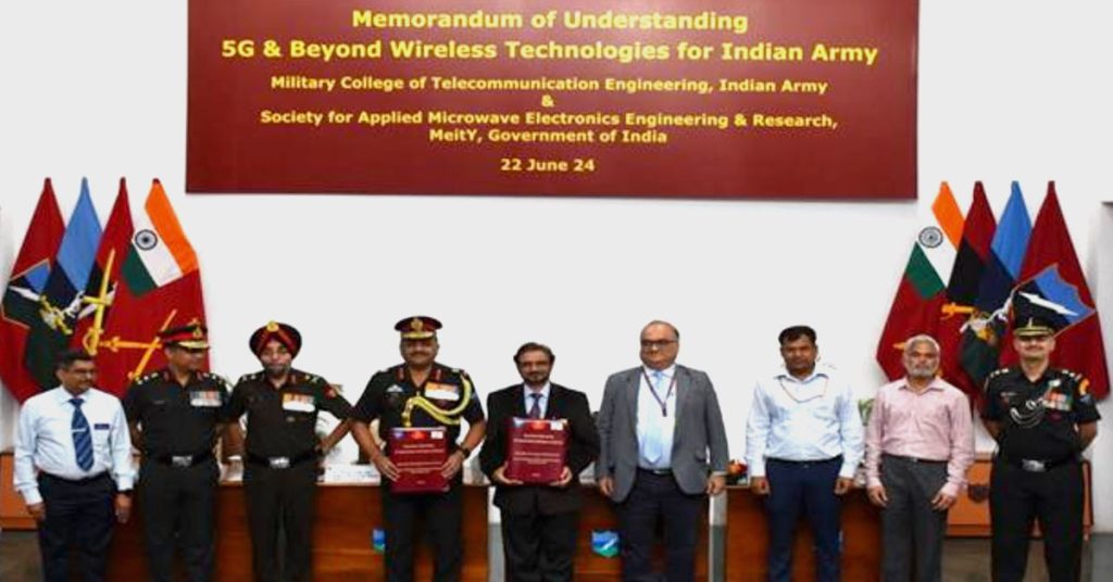 नई दिल्ली : भारतीय सेना के मिलिट्री कॉलेज ऑफ टेलीकम्युनिकेशन इंजीनियरिंग (एमसीटीई) और इलेक्ट्रॉनिक्स और सूचना प्रौद्योगिकी मंत्रालय (एमईआईटीवाई) के तहत एक स्वायत्त अनुसंधान एवं विकास प्रयोगशाला सोसाइटी फॉर एप्लाइड माइक्रोवेव इलेक्ट्रॉनिक्स इंजीनियरिंग एंड रिसर्च (एसएएमईईआर) ने भारतीय सेना के लिए अगली पीढ़ी की वायरलेस प्रौद्योगिकियों में सहयोग को आगे बढ़ाने के लिए एक समझौता ज्ञापन (एमओयू) पर हस्ताक्षर किए।