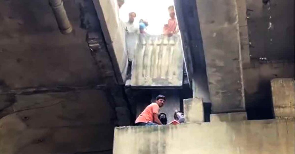 फ्लाईओवर के पिलर पर स्कूटी सहित अटकी लड़की