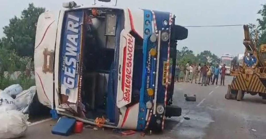 कोलकाता : भुवनेश्वर से कोलकाता जा रही एक निजी बस पश्चिम मेदिनीपुर जिले के नारायणनगर