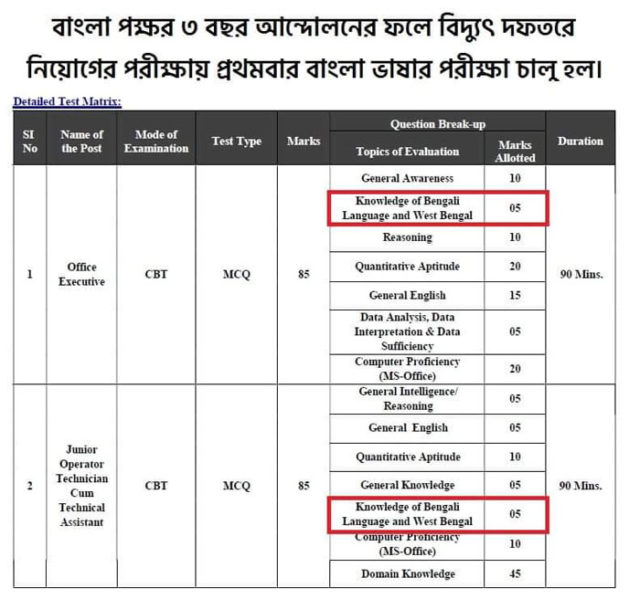 বাংলাপক্ষের দাবি মেনে WBSEDCL-এ বাধ্যতামূলক হল বাংলা ভাষার পরীক্ষা